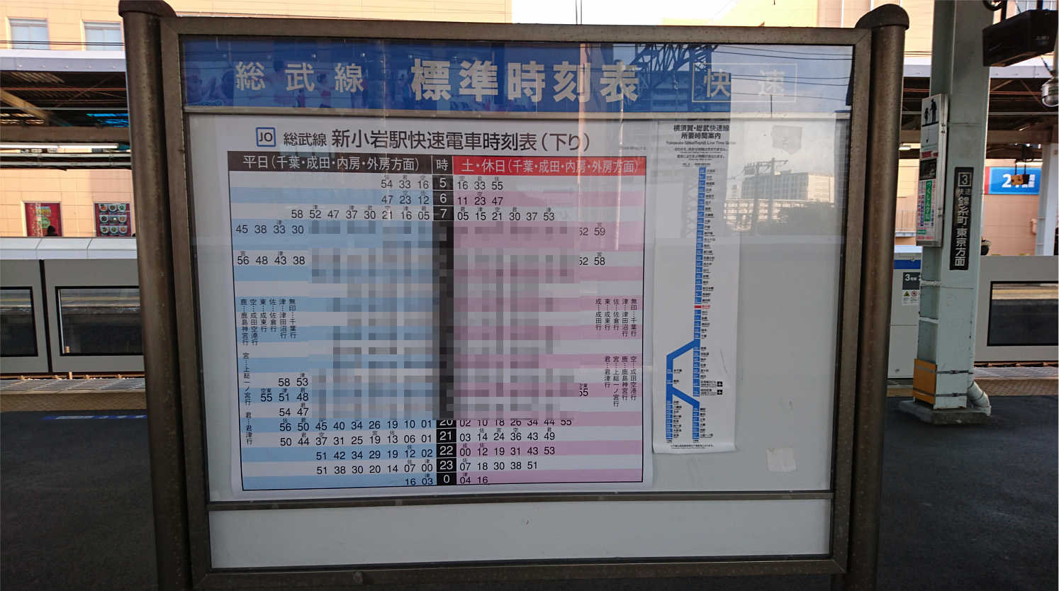 2019年12月6日現在 JR新小岩駅、JR船橋駅、京成船橋駅、京成日暮里駅、JR千葉駅、JR成田駅 京成成田駅、(JR)空港第2ビル駅[改札外]、(京成)空港第2ビル駅、各駅に設置された時刻表(画像は加工しています。必ず鉄道会社公式の時刻表を御覧ください)をもとに考察したブログ独自の見解です。正確性には注意を払っておりますが、誤情報を含んだり、情報が古くなったりすることもあり、必ずしも正確性を保証するものではありません。当表のご利用に関する一切の責任を負いかねます。